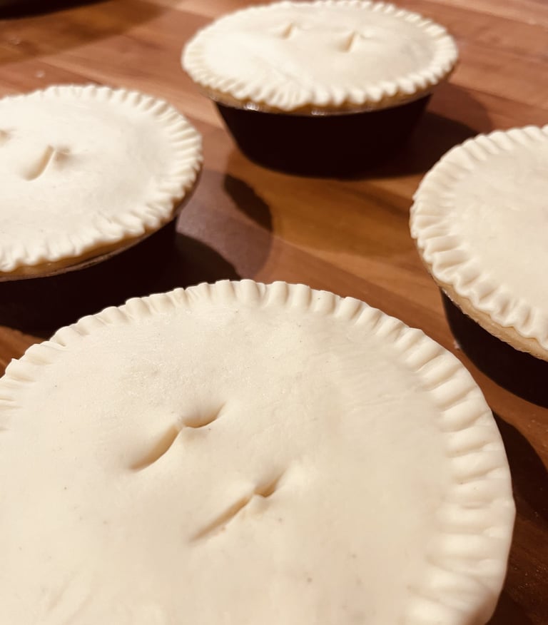 We use only high-quality, savoury meat fillings, slow-cooked to develop deep, traditional flavors. Each pie is hand-crimped and baked in small batches to ensure consistent excellence.